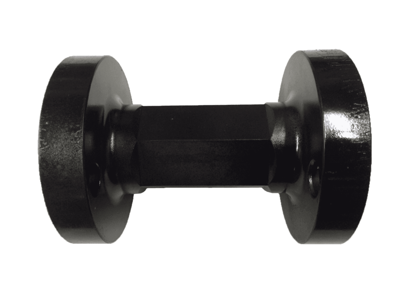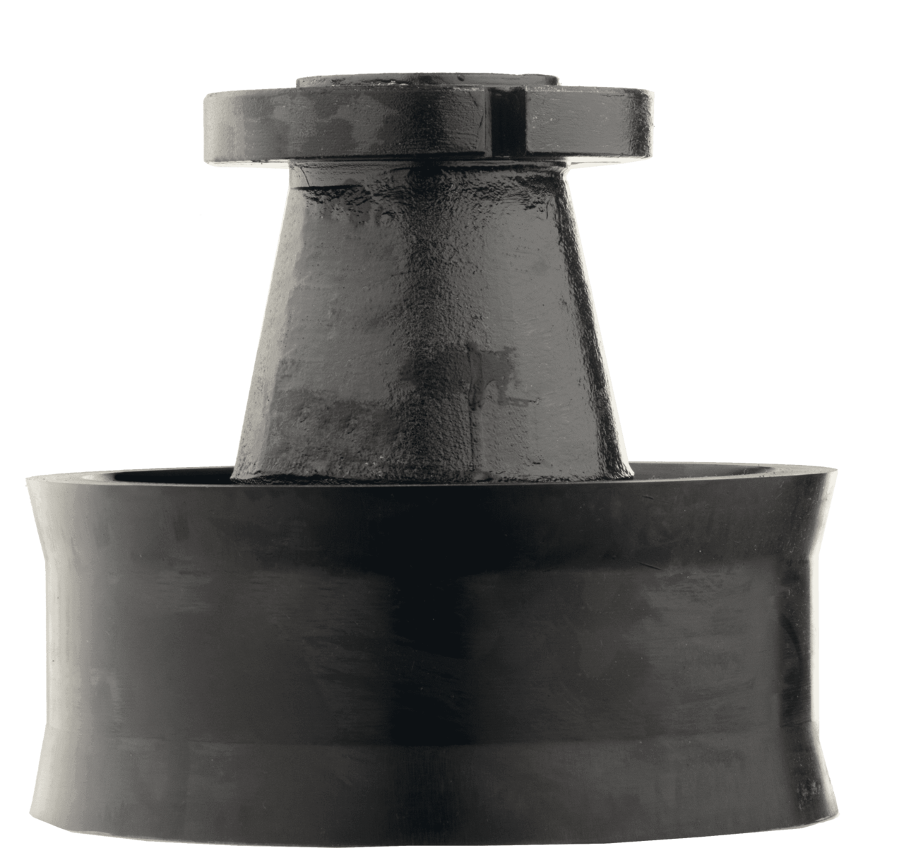 The black, spool-shaped components are concrete pistons with dual sealing surfaces and a central bore for attachment to the piston rod.