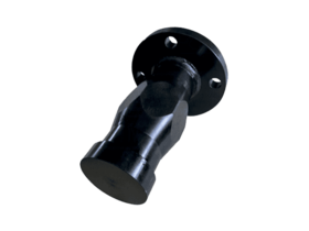 Black Angled Flanged Component: Likely a cylinder end housing or flange adapter that connects the pumping cylinder to the hopper or other structural elements. The angled section may assist in redirecting concrete flow.
