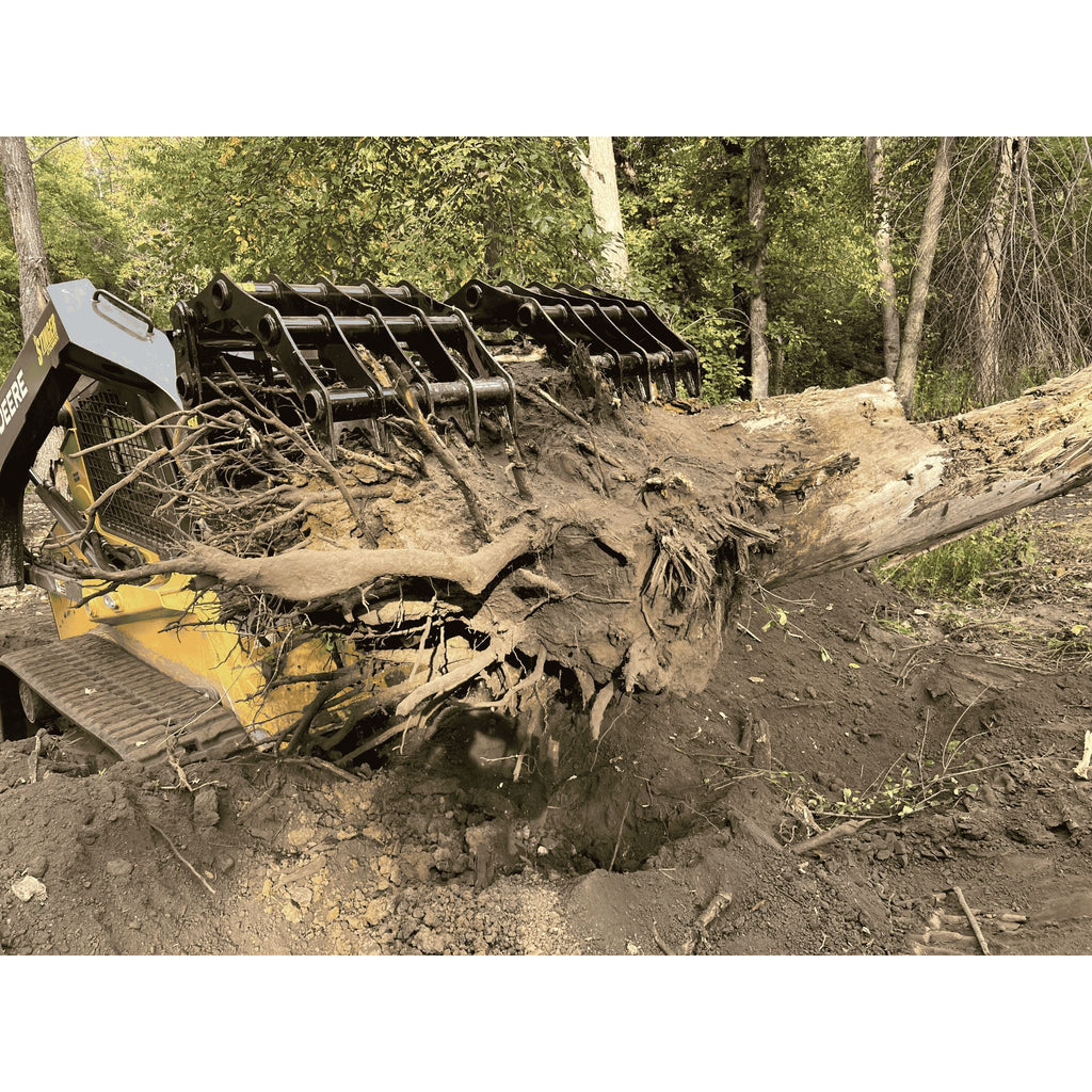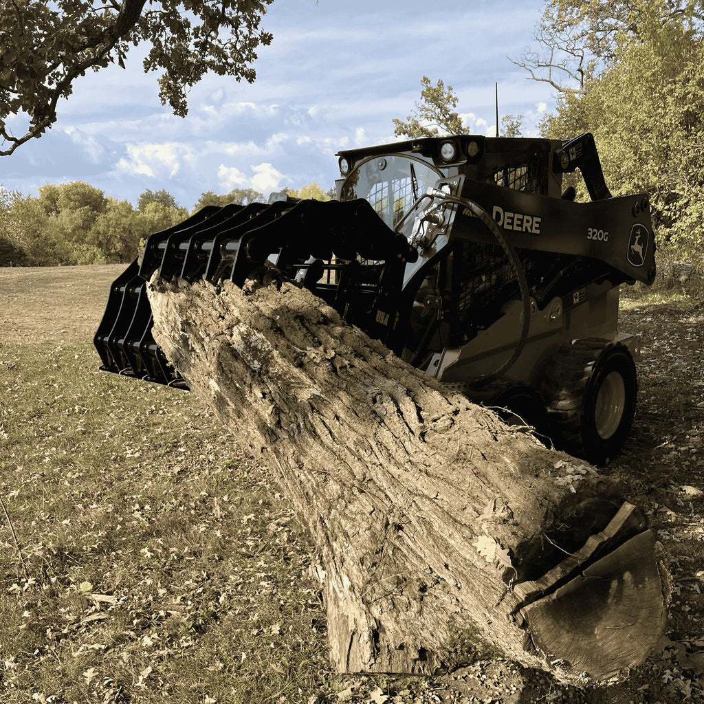 The Stinger CG Series Clam Grapple is the ultimate debris handler for 50–100 HP utility tractors and skid steers. Unlike standard brush grapples, the "Clam" design features a high-volume basket shape with 9-inch tine spacing, allowing you to scoop up bulky brush piles, logs, and barn waste while letting loose dirt sift through.