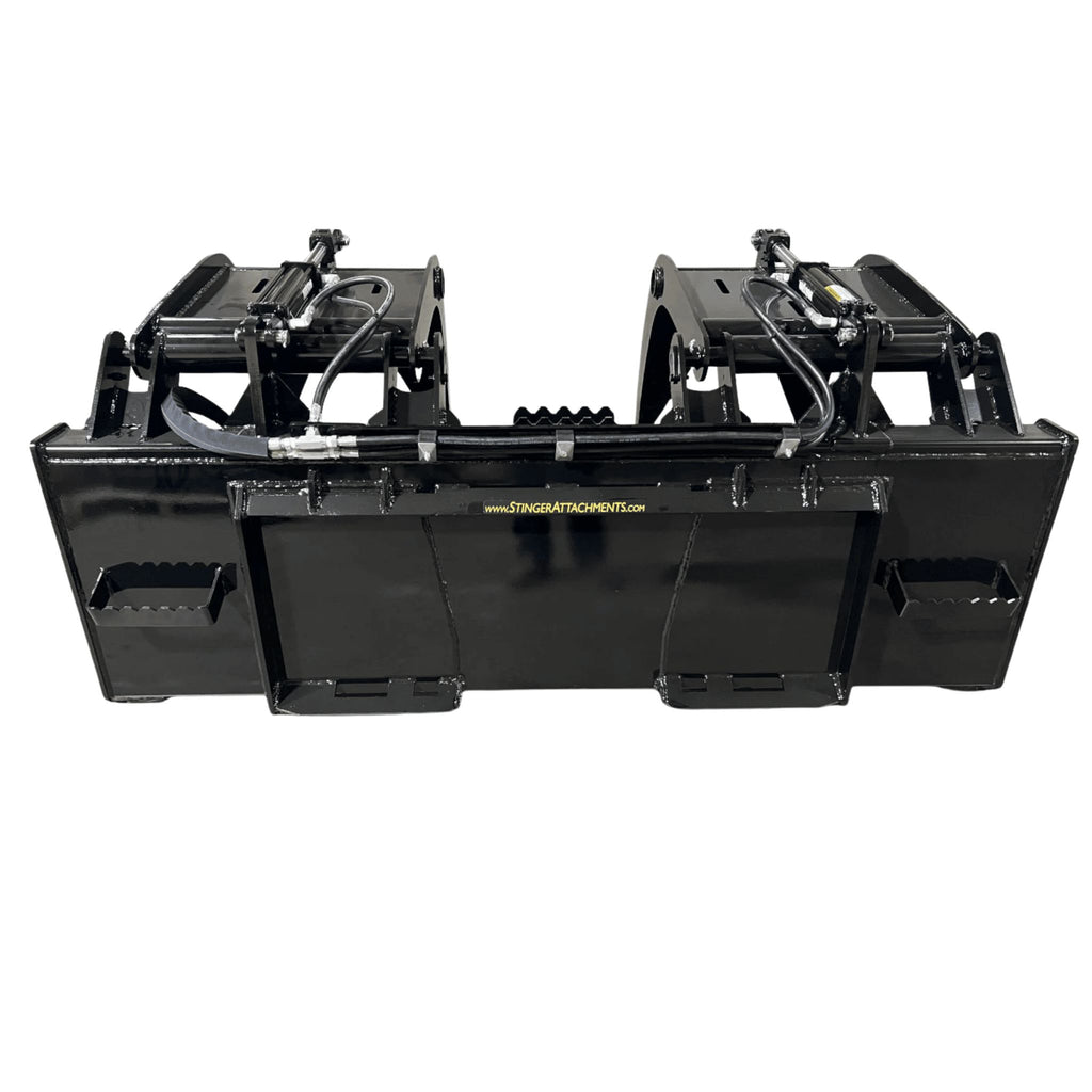 The Stinger DG Series Demolition Grapple is the ultimate hybrid between a dirt bucket and a grapple. Unlike skeleton grapples that let small material fall through, the DG features a **Solid Bottom Shell**. This allows you to scoop up fine debris, gravel, and trash while still using the powerful dual clamps to secure uneven loads like concrete slabs, logs, and scrap metal.