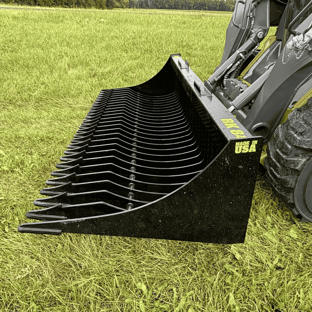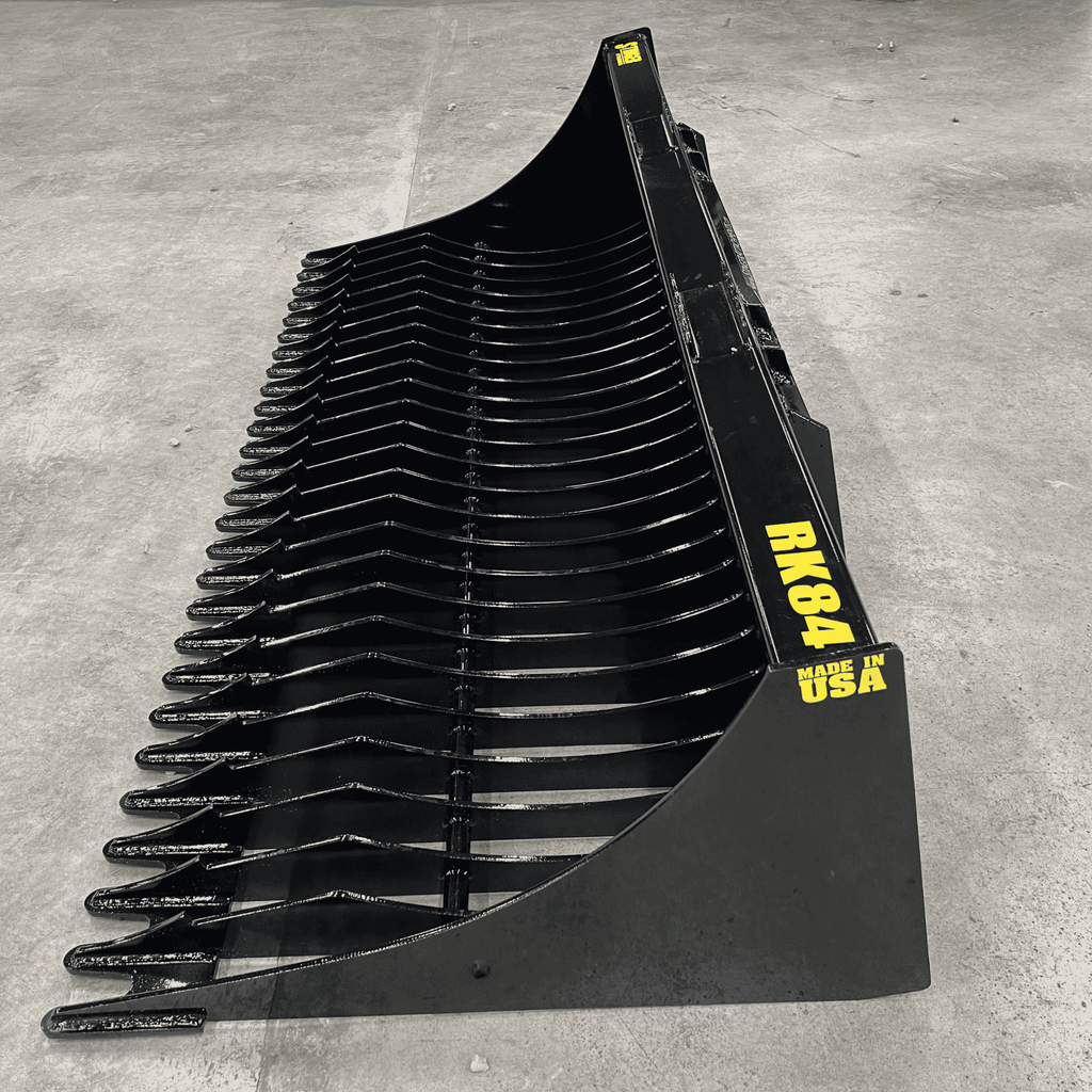 Contoured for Retention: The RK Series features a Contoured Tine Shape designed to cradle material. As you crowd the bucket back, rocks and debris settle into the curved pocket, keeping them secure while loose dirt falls through the 2-7/8" tine openings. This ensures you transport a full load of clean rock every cycle.