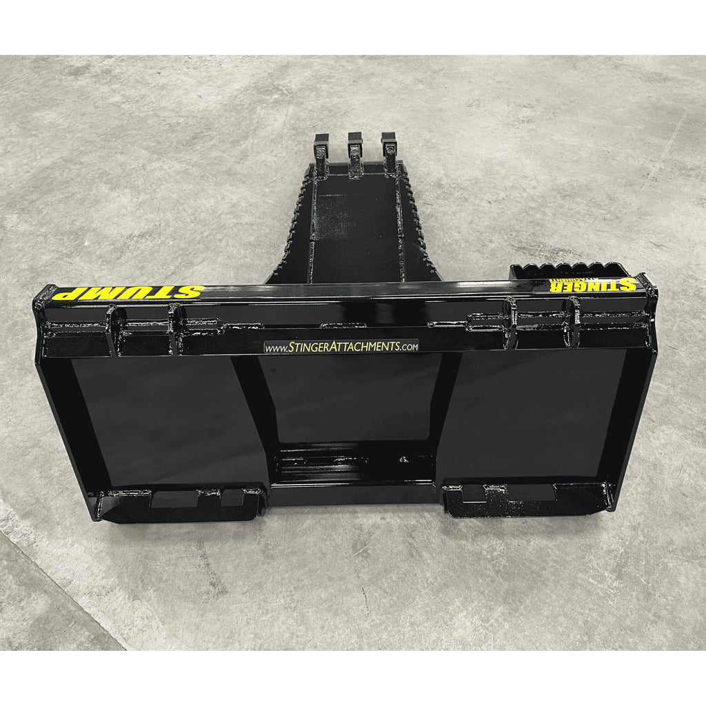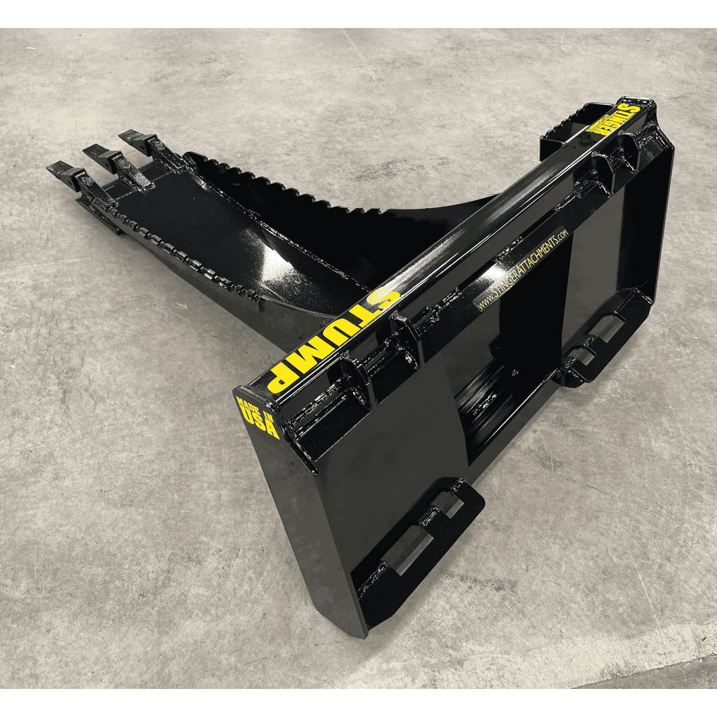 The Root Ripper: The Stinger Attachments Stump Bucket (STB) is engineered to remove stumps, not just dig around them. By combining a 52-inch Long Spade with a **Curved Bottom Design**, this tool acts as a giant lever. Simply plunge the spade under the root ball, and use the curved heel as a fulcrum to pry the stump straight out of the ground.