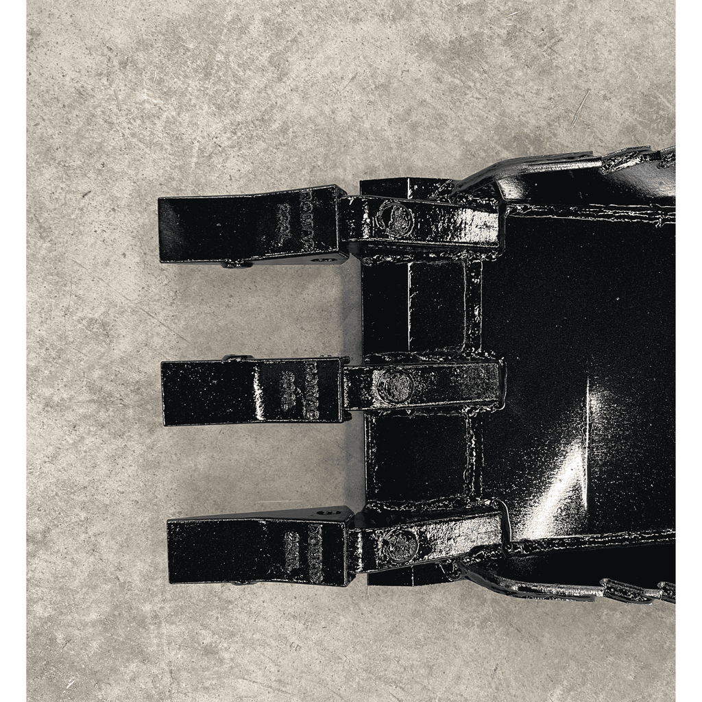 Cut as You Dig: Lateral roots can trap a bucket. The Stinger STB features Serrated Side Skirts (3/8" Rough Tooth) welded to the main 1/2" steel sides. As you work the bucket back and forth, these serrations saw through side roots, freeing the stump for easy removal. Equipped with aggressive Romac Pin-On Teeth, it also excels at digging trenches and popping out large boulders.